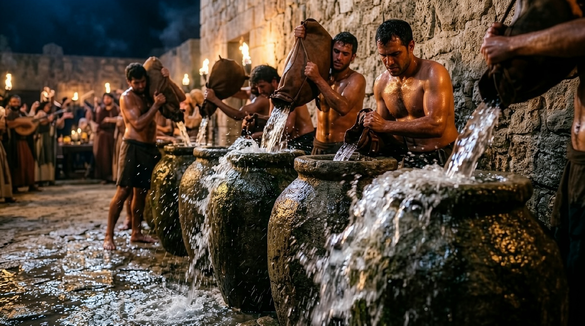 혼인 잔치가 무르익어가던 어느 순간, 당혹스러운 속삭임이 뒷마당까지 불어왔다. "포도주가 떨어졌다." 그것은 잔치의 종말을 의미했고, 주인집의 명예가 산산조각 나는 소리였다. 사람들은 당황했고, 즐거움은 순식간에 불안으로 바뀌었다.